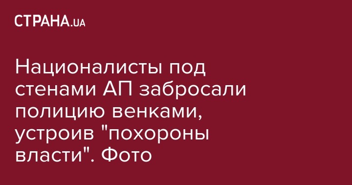 Также националисты принесли к стенам АП венки и начали ими забрасывать полицию, тем самым устроив "похороны власти".