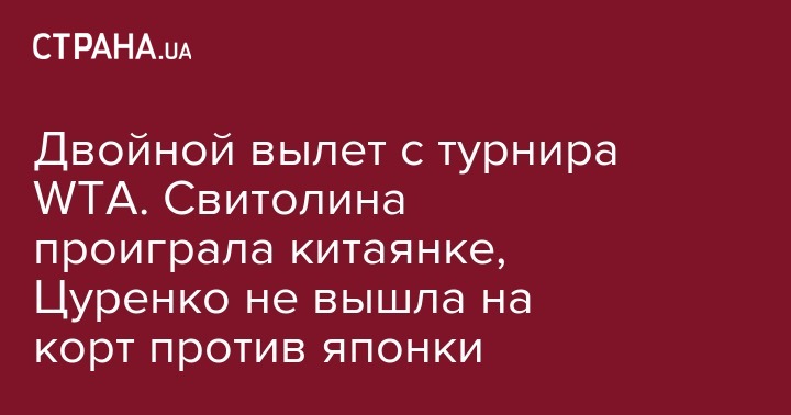 Двойной вылет с турнира WTA. Свитолина проиграла китаянке, Цуренко не вышла на корт против японки