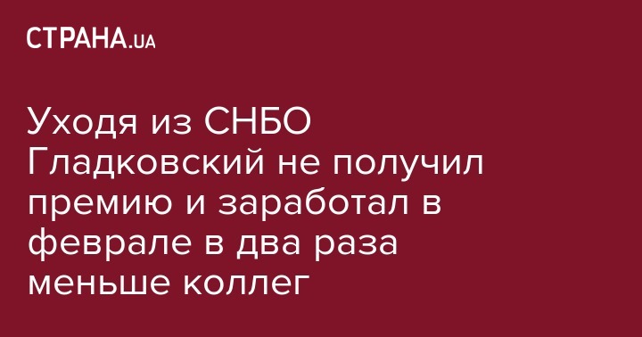 Уволенный после публикации скандального расследования о хищениях в оборонке экс-заместитель секретаря СНБО Олег Гладковский, чьи доходы только в 2019 году оставили 1,9 миллионов гривен, за февраль текущего года получил зарплату в размере 37 771 гривен. Об этом пишут "Украинские Новости"