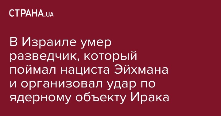 В Израиле умер разведчик, который поймал нациста Эйхмана и организовал удар по ядерному объекту Ирака