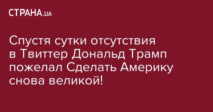 Спустя сутки отсутствия в Твиттер Дональд Трамп пожелал Сделать Америку снова великой!