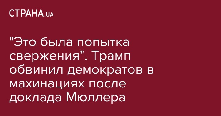 "Надеюсь, кто-то обратит внимание на другую сторону. Это была незаконная попытка свержения, которая завершилась неудачей и, надеюсь, кто-то проверит тех, кто на другой стороне. После долгого разбирательства, после долгого расследования, после того, как столько людей серьезно пострадали, после всего этого, было объявлено, что сговора с Россией не было", - добавил американский лидер.