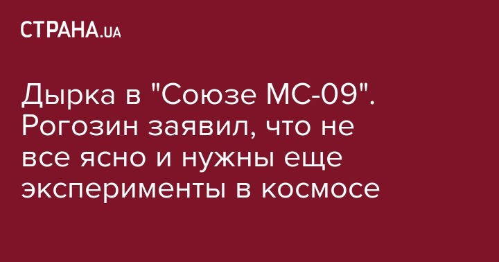 Дырка в "Союзе МС-09". Рогозин заявил, что не все ясно и нужны еще эксперименты в космосе