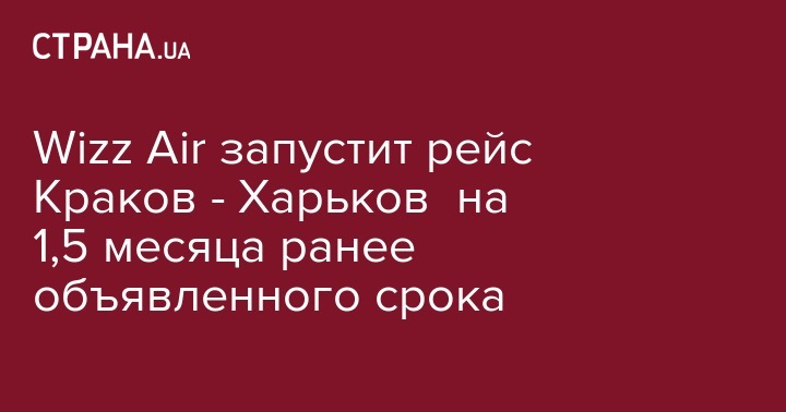 Авиакомпания Wizz Air на полтора месяца сдвинула запуск нового маршрута Краков-Харьков, анонсированного в конце 2018 года. Об этом пишет avianews.