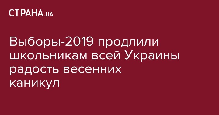 Из-за предстоящих президентских выборов в большинстве городов Украины, как и в Киеве, весенние школьные каникулы продлятся дольше, чем обычно: 1 апреля установлено восьмым их днем. Об этом со ссылкой на министра образования и науки Украины Лилию Гриневич пишет "Интерфакс-Украина"