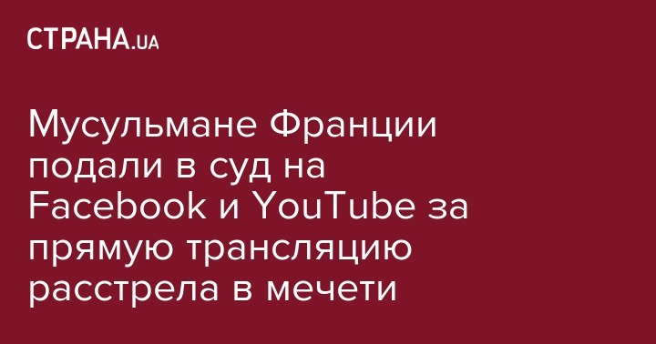 Мусульмане Франции подали в суд на Facebook и YouTube за прямую трансляцию расстрела в мечети
