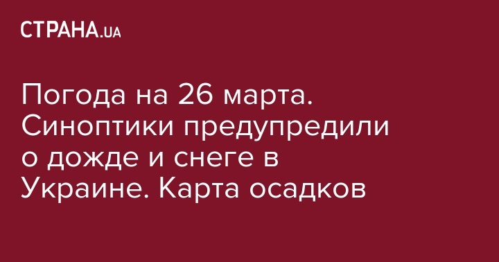 Во вторник, 26 марта, погода в Украине будет пасмурной и дождливой, ночью в некоторых областях даже пройдет мокрый снег. Об этом свидетельствует прогноз синоптиков, опубликованный на сайте Укргидрометцентра