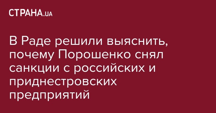 В Раде решили выяснить, почему Порошенко снял санкции с российских и приднестровских предприятий