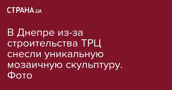 Уникальная абстрактная мозаичная скульптура, сделанная из армобетона, мрамора и цветной смальты, располагалась в Днепре по адресу: ул. Макарова, 27-а. Ее создал выдающейся мастер-монументалист, соавтор фресок Киевского речного вокзала, аэропорта Борисполь, оформления станции метро "Лыбидская" Эрнест Котков. Демонтаж работы проходил без информационного стенда, без каких-либо объявлений или предупреждений, даже без забора.