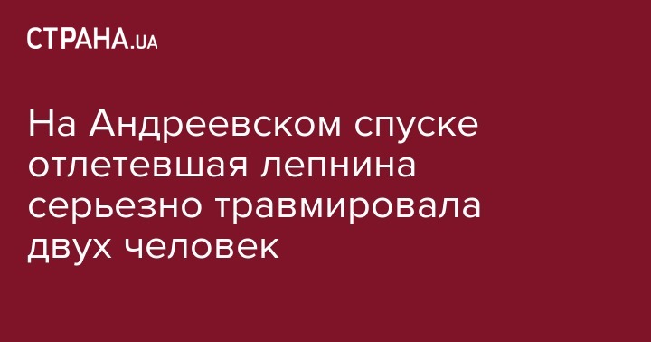 В результате падения части лепнины с фасада дома на Андреевском спуске в Киеве, двое человек получили черепно-мозговые травмы и переломы. Об этом сообщает УНН .