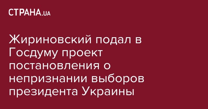Лидер Либерально-демократической партии РФ Владимир Жириновский подал в Государственную думу России проект постановления о непризнании итогов выборов президента Украины. Документ опубликован на сайте Госдумы.