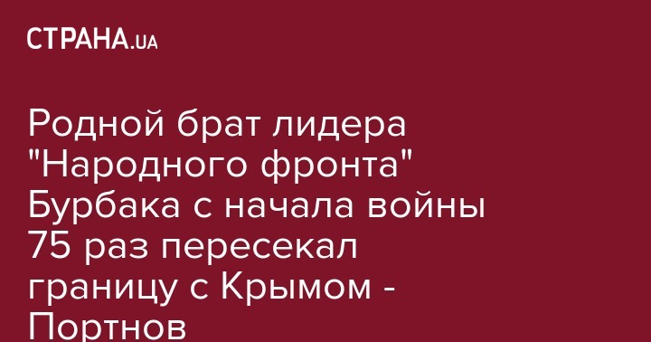 "Почти во все дни, когда на Донбассе гибли украинские солдаты, семья лидера фракции Народный Фронт Максима Бурбака беспрепятственно посещала оккупированный Крым. В течение пяти лет войны, родной брат Максима Бурбака и одноклассник Арсения Яценюка Алексей Бурбак более 75 раз пересекал границу с оккупированным Крымом", - заявил Портнов.