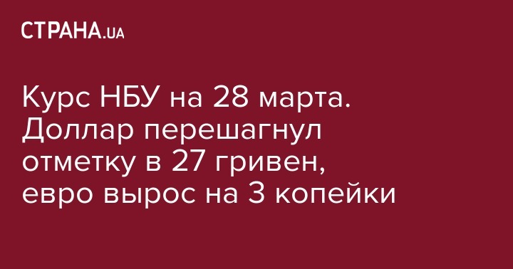 Курс НБУ на 28 марта. Доллар перешагнул отметку в 27 гривен, евро вырос на 3 копейки