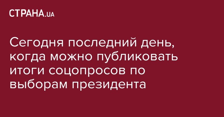 Четверг, 28 марта, - последний день, когда перед выборами президента 31 марта разрешается обнародовать результаты социологических опросов, связанных с выборами. Это следует из закона "О выборах президента Украины", пишут Украинские новости.