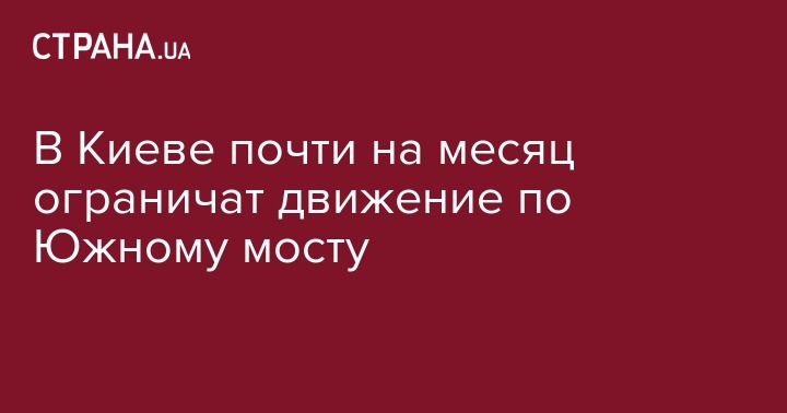 В Киеве почти на месяц ограничат движение по Южному мосту