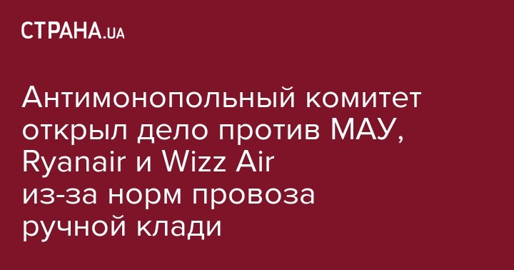 Киевское отделение Антимонопольного комитета Украины (АМКУ) начало расследование относительно изменения норм провоза ручной клади крупнейшей украинской авиакомпанией "Международные авиалинии Украины" (МАУ), а также лоукостерами Ryanair (Ирландия) и Wizz Air (Венгрия).