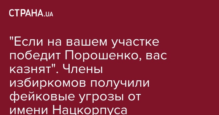 "27.03.2019 года все члены ОВК #113 получили смс от "Национального корпуса" следующего содержания: live:natscorpoff: Shanovny Im’ya Po-Batkovi, yaksho na vashiy dilnici peremoje P. Poroshenko, vas bude stracheno.
