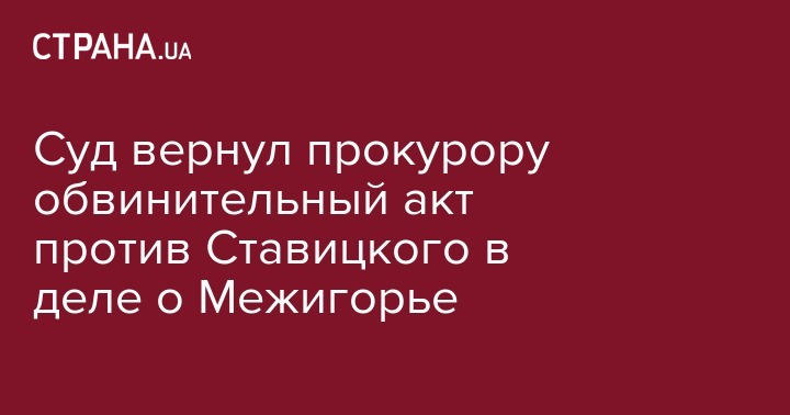 Из Святошинского районного суда Киева прокурору вернули прокурорский обвинительный акт по делу экс-председателя правления НАК "Надра Украины" Эдуарда Ставицкого о якобы завладении им комплексом отдыха "Пуща-Водица" урочища "Межигорье". Об этом сообщает "Судебный репортер".