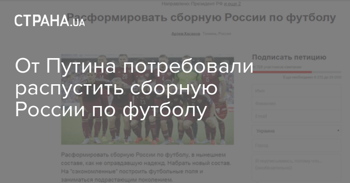 От Путина потребовали распустить сборную России по футболу
