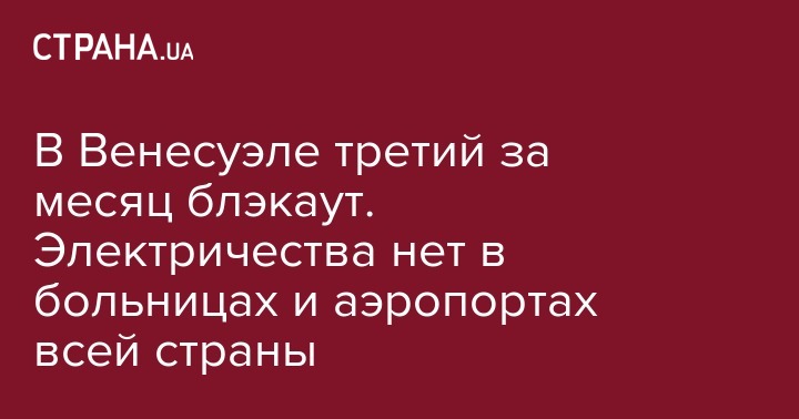 Электричество в стране отключили в 19:10 по местному времени (01:10 субботы по Киеву). Блэкаут случился в Каракасе и других крупных городах, включая Маракайбо, Валенсию, Маракай и Сан-Кристобаль. При этом последствия прошлого масштабного отключения электричества, которое случилось 25 марта, властям удалось устранить только 27 числа.
