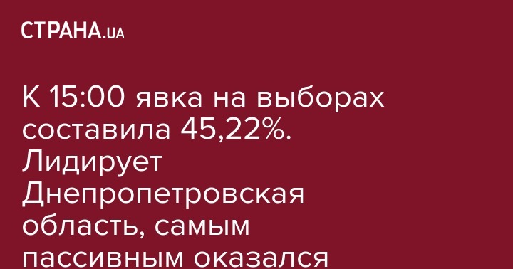 К 15:00 явка на выборах составила 45,22%. Лидирует Днепропетровская область, самым пассивным оказался Ивано-Франковск