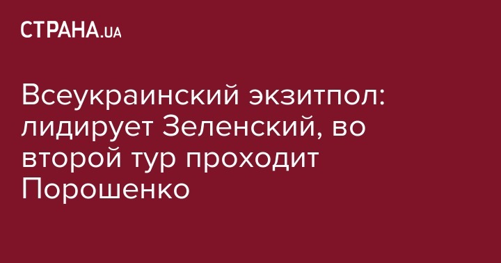 Всеукраинский экзитпол: лидирует Зеленский, во второй тур проходит Порошенко
