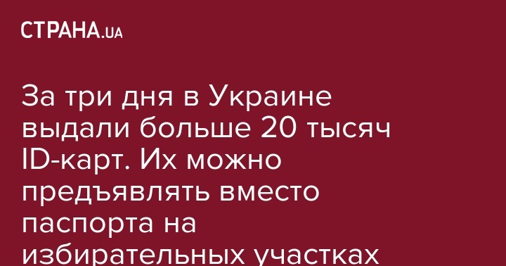 За три дня в Украине выдали больше 20 тысяч ID-карт. Их можно предъявлять вместо паспорта на избирательных участках