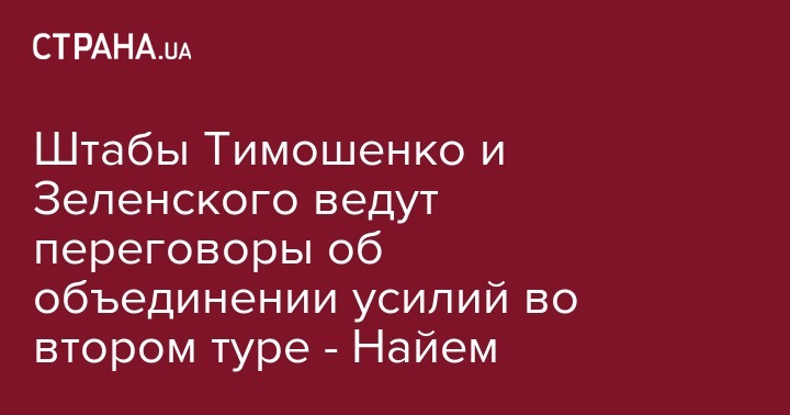 Штабы Юлии Тимошенко и Владимира Зеленского ведут переговоры об объединении усилий во втором туре президентских выборов. Об этом в своем Telegram сообщает нардеп Мустафа Найем.