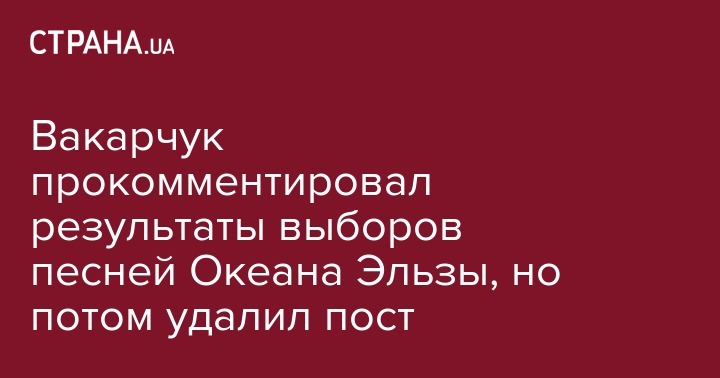 Вакарчук прокомментировал результаты выборов песней Океана Эльзы, но потом удалил пост