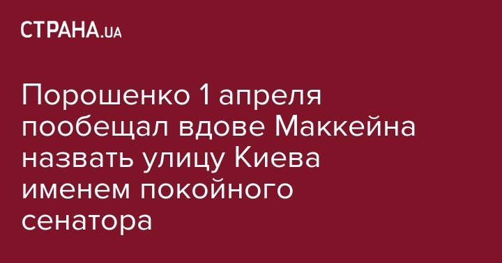 Порошенко 1 апреля пообещал вдове Маккейна назвать улицу Киева именем покойного сенатора