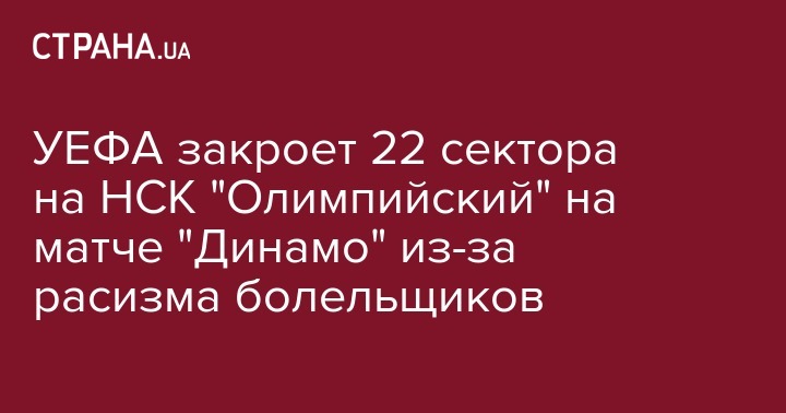На следующем домашнем матче "Динамо" в европейских кубках по решению УЕФА закроют 22 сектора НСК "Олимпийский". Об этом сообщает официальный сайт УЕФА.