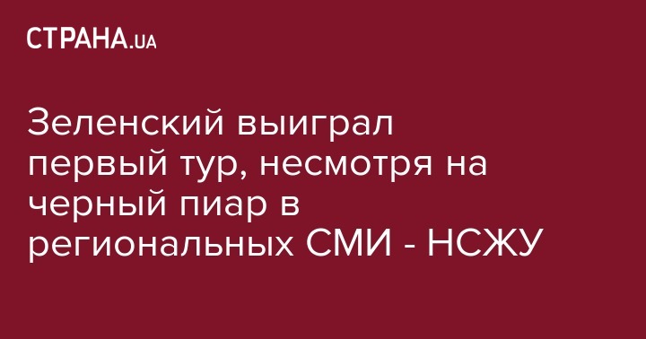 Черный пиар, который штабы активно размещали в региональных газетах, не помешала получить в областях убедительное лидерство Владимиру Зеленскому и получить высокие показатели Юлии Тимошенко и Анатолию Гриценко. Такие выводы сделал Национальный союз журналистов Украины (НСЖУ), исходя из региональных результатов голосования на сайте ЦИК, пишет в Facebook глава НСЖУ Сергей Томиленко.