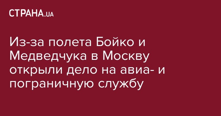 Против сотрудников Государственной пограничной и Государственной авиационной служб открыли уголовное дело из-за полета народного депутата Юрия Бойко и Виктора Медведчука в Москву. Об этом сообщает "УП", ссылаясь на представителей Госбюро расследований.