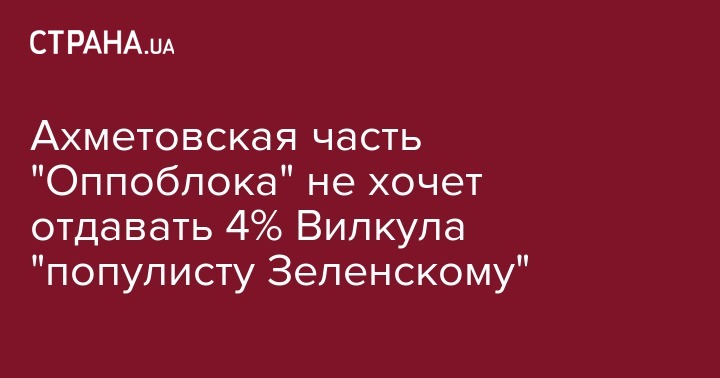 Ахметовская часть "Оппоблока" не хочет отдавать 4% Вилкула "популисту Зеленскому"
