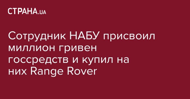 Сотрудник НАБУ присвоил миллион гривен госсредств и купил на них Range Rover