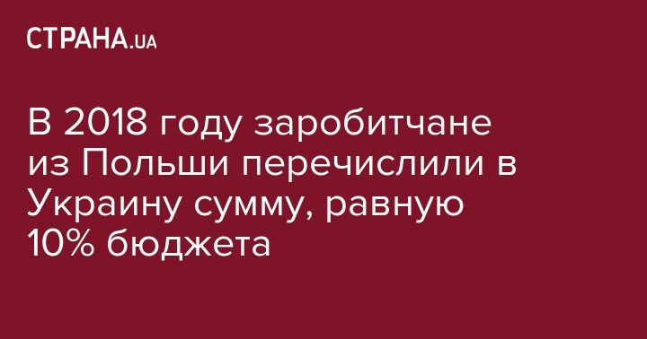 Стоит отметить, что размер доходов госбюджета Украины в 2019 году составляет около 38 миллиардов долларов, таким образом получается, что заробитчане из Польши перечислили сумму, равную около десятой десятой части доходной части бюджета.