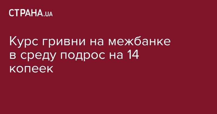 Курс гривни на межбанке в среду подрос на 14 копеек
