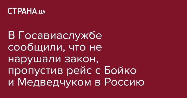 В Госавиаслужбе сообщили, что не нарушали закон, пропустив рейс с Бойко и Медведчуком в Россию