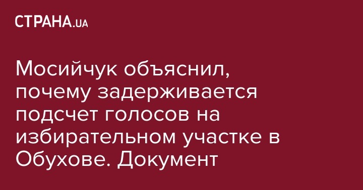 Мосийчук объяснил, почему задерживается подсчет голосов на избирательном участке в Обухове. Документ