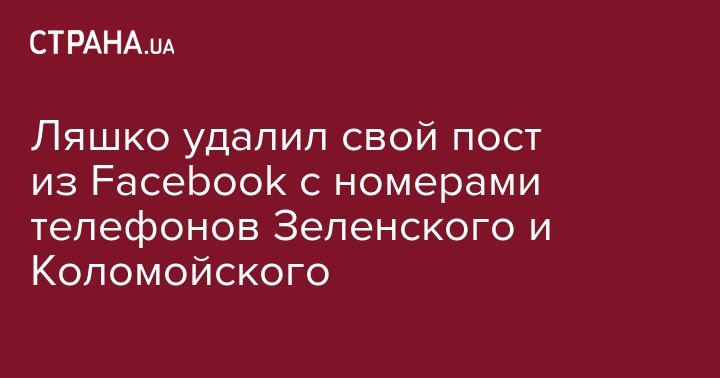 Лидер Радикальной партии Олег Ляшко удалил свой пост в Facebook с номерами телефонов олигарха Игоря Коломойского, кандидата в президенты Украины Владимира Зеленского и генерального директора телеканала "1+1" Александра Ткаченко.