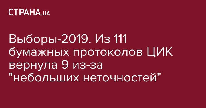 На данный момент в 9 протоколах из 111 ранее принятых были выявлены некие неточности, в связи с чем они были отправлены на доработку. Отмечается, что речь идет о несущественных неточностях, например помарках. После исправления этих неточностей, доработанные протоколы в течение нескольких дней возвращаются назад в Центризбирком. Так, ожидается, что 4 доработанных протокола поступят в ЦИК сегодня, 4 апреля.