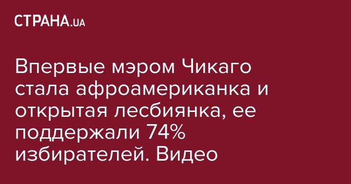 Впервые мэром Чикаго стала афроамериканка и открытая лесбиянка, ее поддержали 74% избирателей. Видео