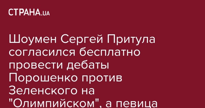 Шоумен Сергей Притула согласился бесплатно провести дебаты Порошенко против Зеленского на "Олимпийском", а певица Камалия - спеть гимн