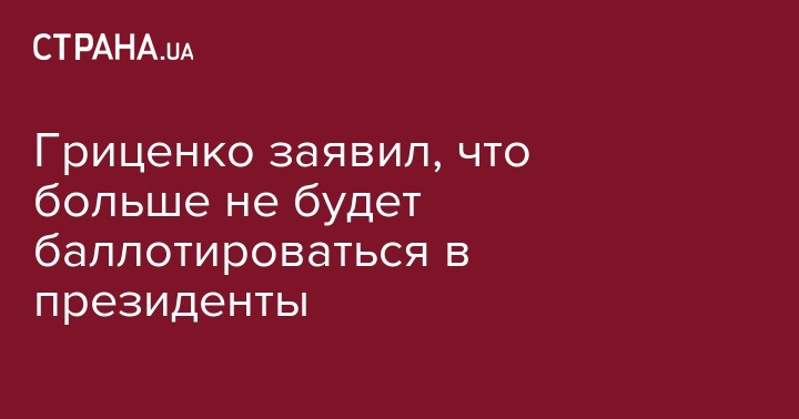 Гриценко заявил, что больше не будет баллотироваться в президенты