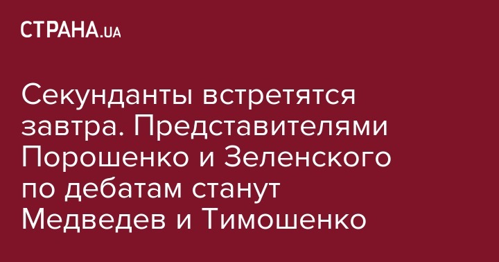 Секунданты встретятся завтра. Представителями Порошенко и Зеленского по дебатам станут Медведев и Тимошенко