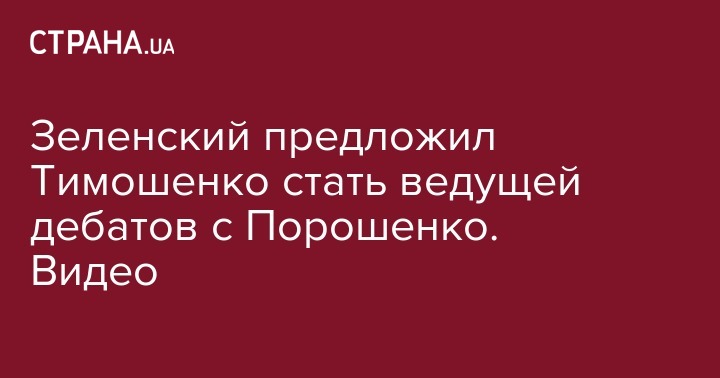 "Для избежания подкупов, провокаций, административного давления, мы предлагаем назначить отдельного независимого арбитра и ведущего для проведения дебатов. Юлия Тимошенко, вы заняли третье место в первом туре и не поддержали ни одного из кандидатов, сможете ли вы стать гарантом честных правил и равных возможностей на дебатах? Ждем ответ на протяжении 24 часов", - сказал Зеленский в видеообращении.