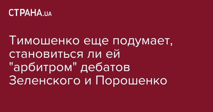 Тимошенко еще подумает, становиться ли ей "арбитром" дебатов Зеленского и Порошенко