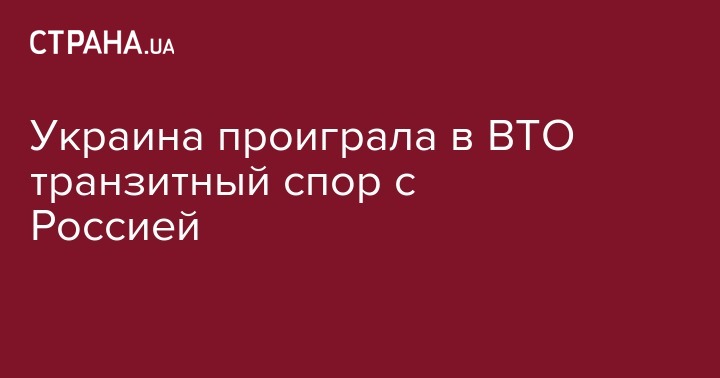 Представители Украины проиграли ключевой торговый спор с Российской Федерацией в ВТО по делу о транзитных перевозках. Об этом сообщила Европейская правда.