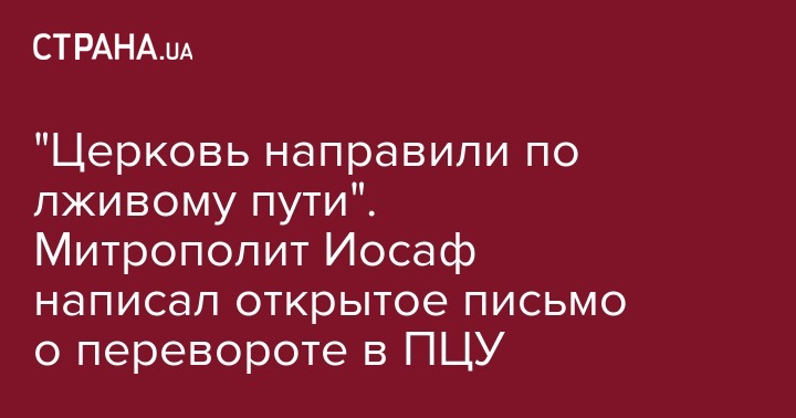 "Церковь направили по лживому пути". Митрополит Иосаф написал открытое письмо о перевороте в ПЦУ