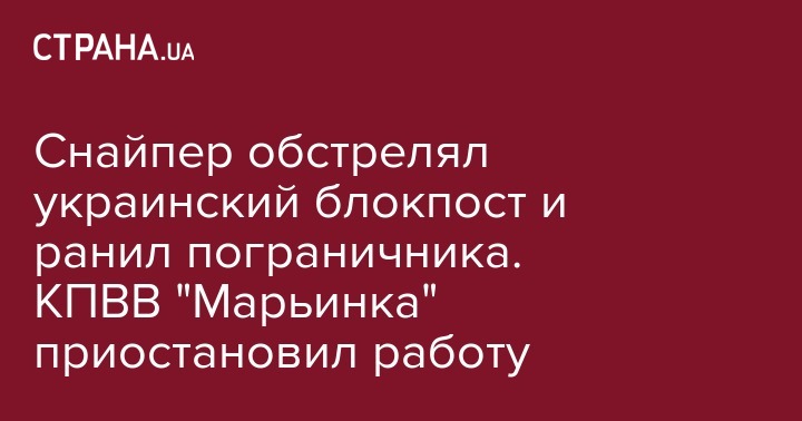 В пятницу, 5 апреля, снайпер противника обстрелял украинский блокпост КПВВ "Марьинка" из-за чего ранения получил один военнослужащий. Об этом сообщил Спикер Государственной пограничной службы Олег Слободян на своей странице в Facebook.